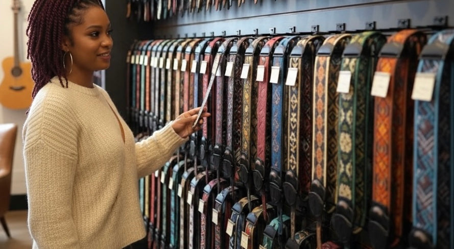 Our guitar and ukulele straps are built to offer comfort, reliability, and style for musicians of all ages and skill levels. With adjustable sizing and durable construction, they fit acoustic and electric guitars, basses, and ukuleles with ease. Whether youβre a beginner at lessons or a seasoned performer on stage, these straps provide the secure, comfortable support you need to play with confidence.
